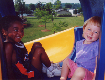 One night when Barb and Charles were out on a date, Emma was missing us, and decided to call Jorian. On the phone she told him "Miss Mommy. Miss Daddy.", so Jorian said "Come on over!" -- and she did! |